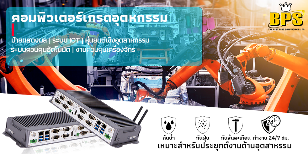 จำหน่าย Industrial Box PC สินค้านำเข้าคุณภาพเกรดงานอุตสาหกรรม IP65, IP66, IP67 Waterproof ให้เลือกใช้งาน มีความทนทานกับการทำงานที่หนัก มีหลากหลายรุ่นให้เลือกใช้งาน CPU Celeron ,i3 ,i5 ,i7 ให้เหมาะกับงานโปรเจกส์ของคุณ สนับสนุน Windows OS มีพอร์ตครบ อาธิ Rs232, Rs485, Rs422, USB2, USB3, Lan,GPIO, VGA, HDMI, DP เป็นต้น เหมาะสำหรับงาน อาธิ งานควบคุมการผลิต, ควบคุมเครื่องจักร, ตู้ Kiosk, จอ Digital Signage เป็นต้น สินค้ามีหลากหลายรุ่นให้คุณเลือกใช้ สนใจสอบถามรายละเอียดเพิ่มเติมได้ที่ ฝ่ายขายของเรา ...