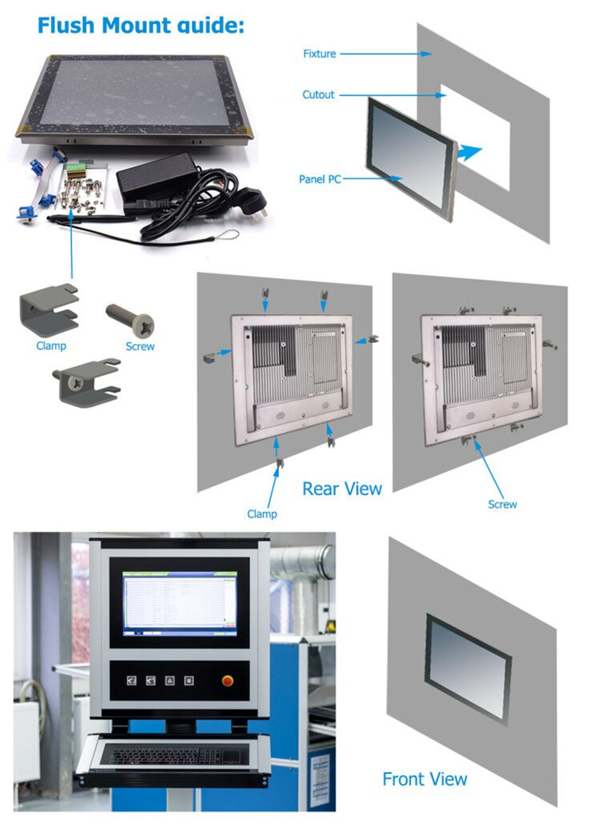 [Fanless & Embedded Design] industrial panel pc adopts fanless and embedded design, so there is no need to worry about connection problems. This design greatly improves the reliability of the machine and completely solves the problem of insufficient heat dissipation and life span of traditional industrial computers.