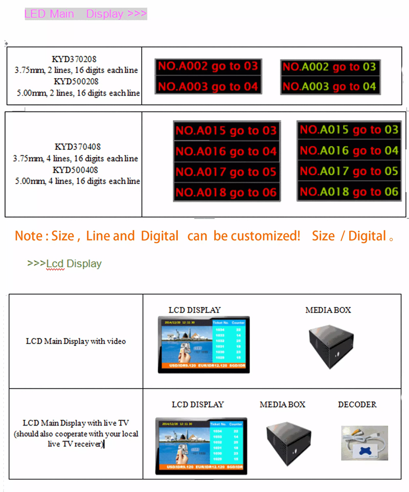 ♦ System support multi waiting area prompt calling information, waiting area Voice and display can be independent.