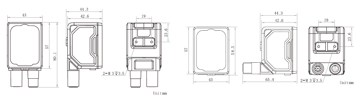 Straight angle: 80.1 mm × 43 mm × 44.3 mm